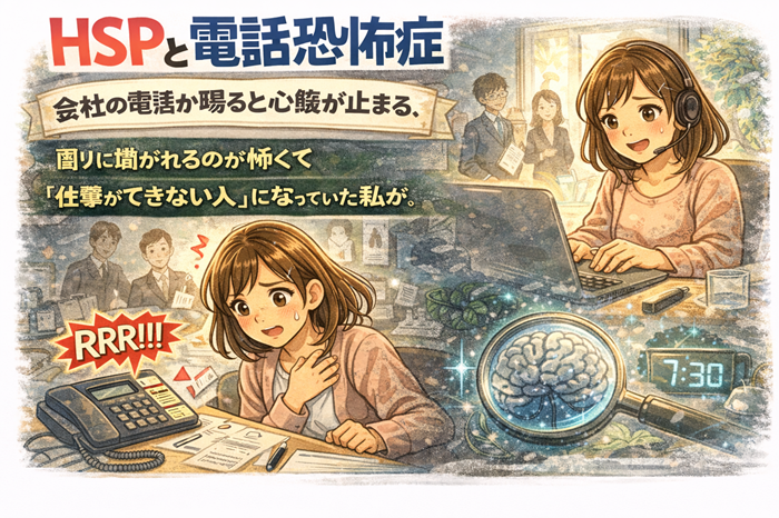 この記事では、電話対応でパニックになり、トイレで泣いていた元会社員の私が、 「なぜHSPは電話がこれほど怖いのか(脳の仕組み)」 「明日から使える、電話の恐怖を減らす物理的な対策」 そして、 「電話対応におびえない働き方(リモートワーク・適職)を手に入れる方法」 について、徹底的に解説します。
