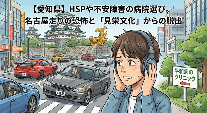 今日は、愛知県のHSPさんが、名古屋走りや世間体に振り回されず、自分の心を守るための場所(心療内科)を見つけるためのヒントと、エリア別の事情について、じっくりとお話しします。