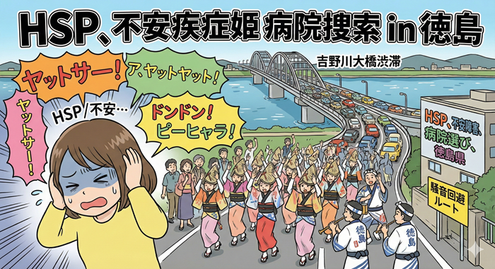 今日は、徳島県のHSPさんが、橋の恐怖や祭りの熱狂に飲み込まれず、自分の心を守るための場所(心療内科)を見つけるためのヒントと、エリア別の事情について、じっくりとお話しします。