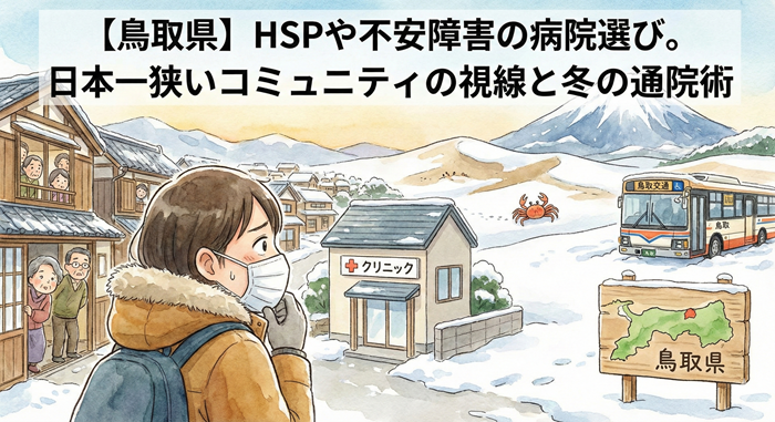 今日は、鳥取県のHSPさんが、世間の目や雪道の不安に負けず、自分の心を守るための場所(心療内科)を見つけるためのヒントと、エリア別の事情について、じっくりとお話しします。